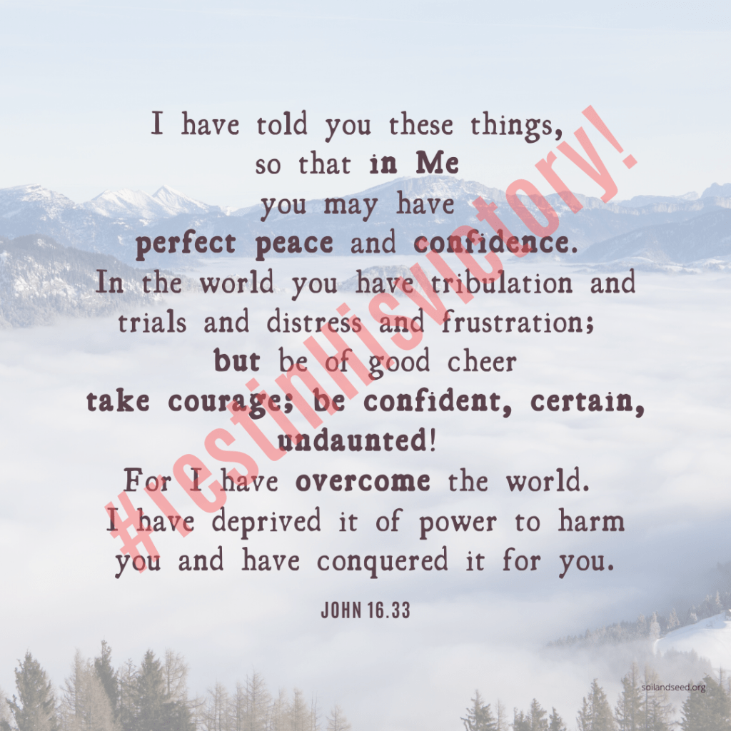 Authority, Be, BUT, Care, Certain, Confidence, Confident, Conqueror, Courage, Frustration, Fullness, God, Good, Grace, Holy, Holy Spirit, Jesus, John 16, Obedience, Overcome, Peace, Perfection, Powerful, Powerless, Suffering, Take, Tenderness, Tribulation, Undaunted, Yeshua